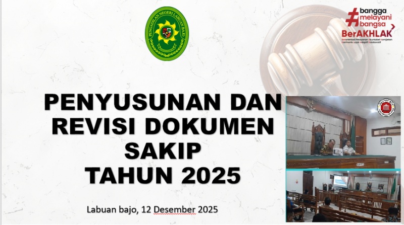 Labuan Bajo (12/12/2025). bertempat di Ruang Sidang Cakra Pengadilan Negeri Labuan Bajo telah dilakukan rapat penyusunan SAKIP 2025 yang dipimpin oleh Ketua Pengadilan Negeri Bapak Isdaryanto, S.H., M.H. yang didampingi oleh Wakil Ketua Bapak Erwin Harlond Palyama, S.H., M.H. dengan dihadiri oleh Plt.Panitera, Sekretaris, dan seluruh pejabat struktural dan fungsional serta Pegawai dan PPPK pada Pengadilan Negeri Labuan Bajo
